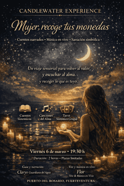 Flor destaca por su conexión con lo sutil y lo espiritual, aportando a Candelwater Experience una voz que no busca el espectáculo, sino la emoción verdadera y la presencia consciente.